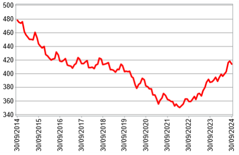 - il prezzo medio dell’r.c. auto è di 414 euro (418 euro ad agosto 2024), in aumento su base annua del +6,8% in termini nominali (+6,1% in termini reali); in agosto la crescita nominale era stata del +6.7%;